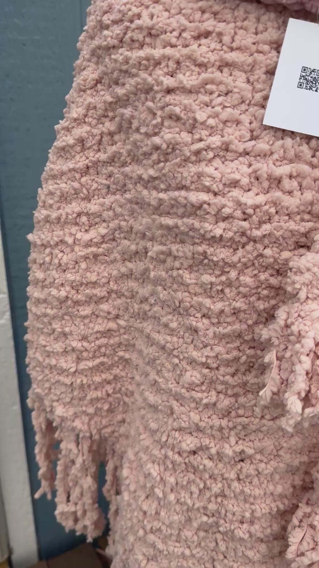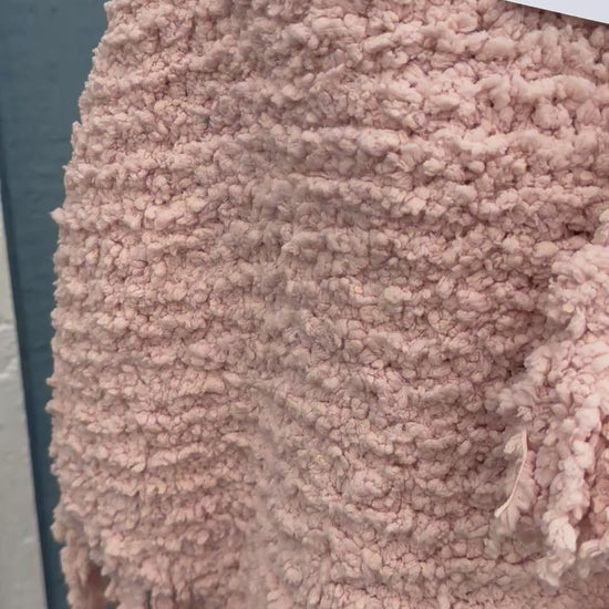 Wrap yourself in luxe comfort with this stunning poncho, hand-knitted in a rich blush-toned bouclé yarn that delivers exceptional warmth and presence. This piece is thick, substantial, and beautifully textured, giving it a high-end feel that stands out effortlessly.