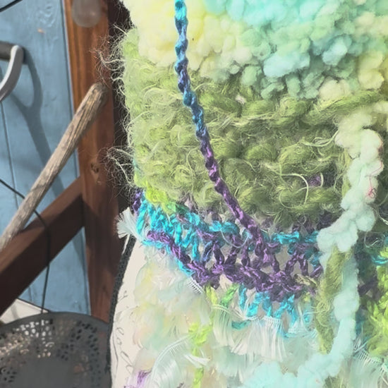 The mix of fibers gives the scarf a beautiful, organic texture, and the fringe woven throughout the design gently frames your face and adds dynamic movement as you wear it. Please note: these scarves use many different yarns, so they may not be suitable for those with fiber sensitivities.